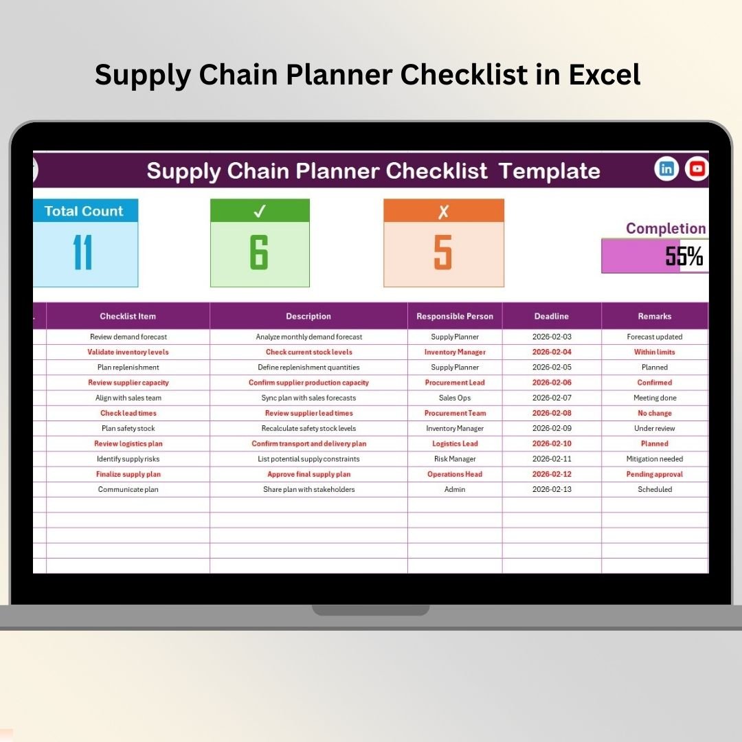 The Supply Chain Planner Checklist in Excel is designed to keep planning activities structured and visible at all times 📊.