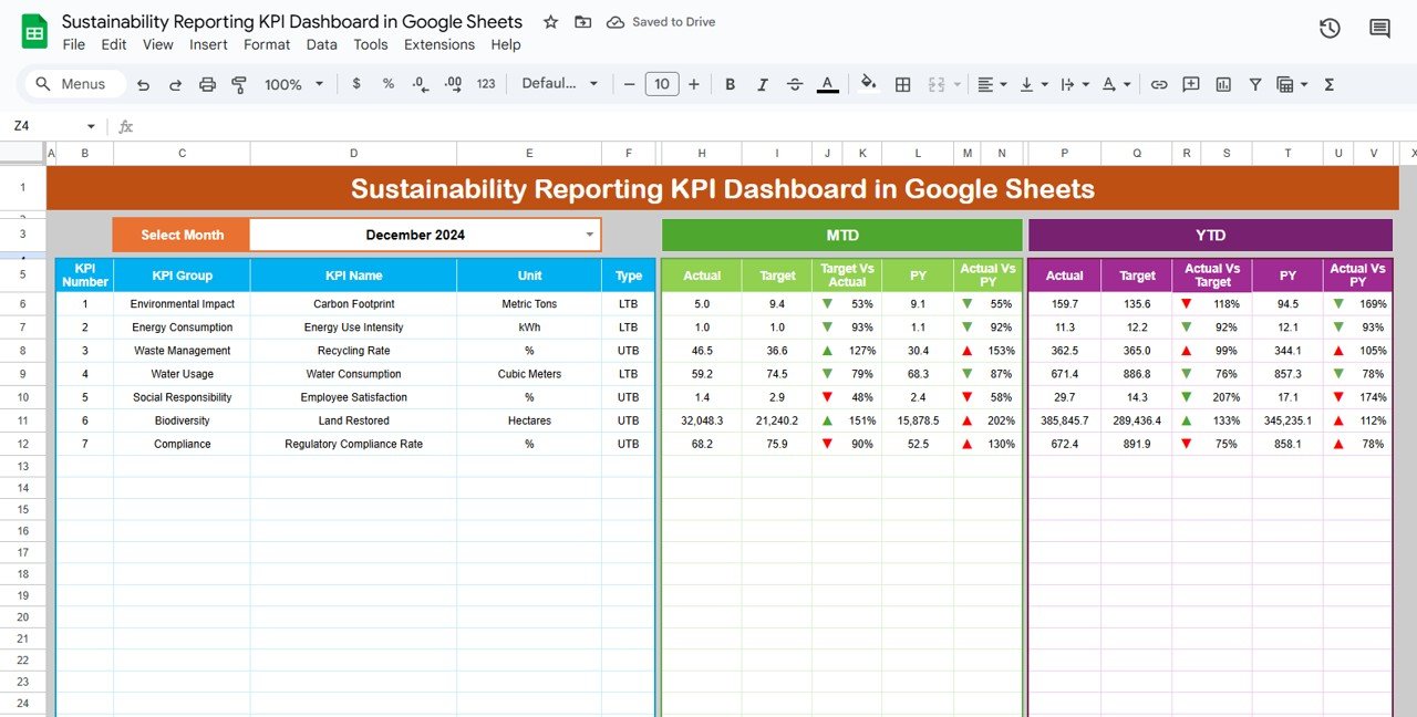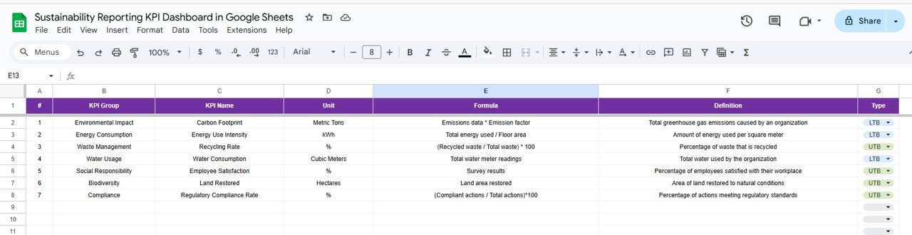🔑 Key Features of Sustainability Reporting KPI Dashboard in Google Sheets