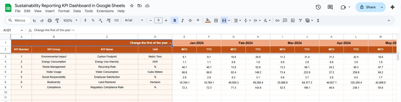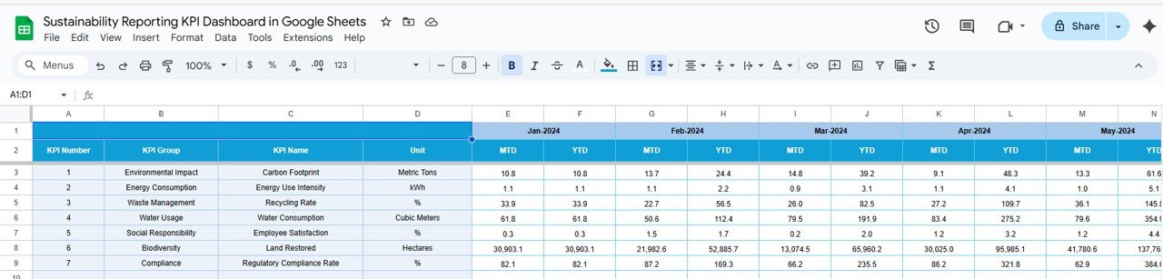 ✅ Sample KPIs Included – For energy, waste, emissions, water, and more