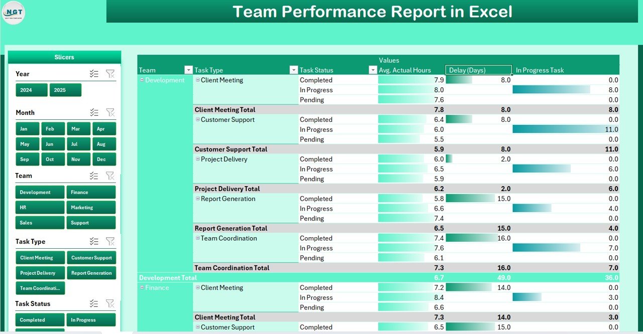 Team Performance Report in ExcelTeam Performance Report in Excel