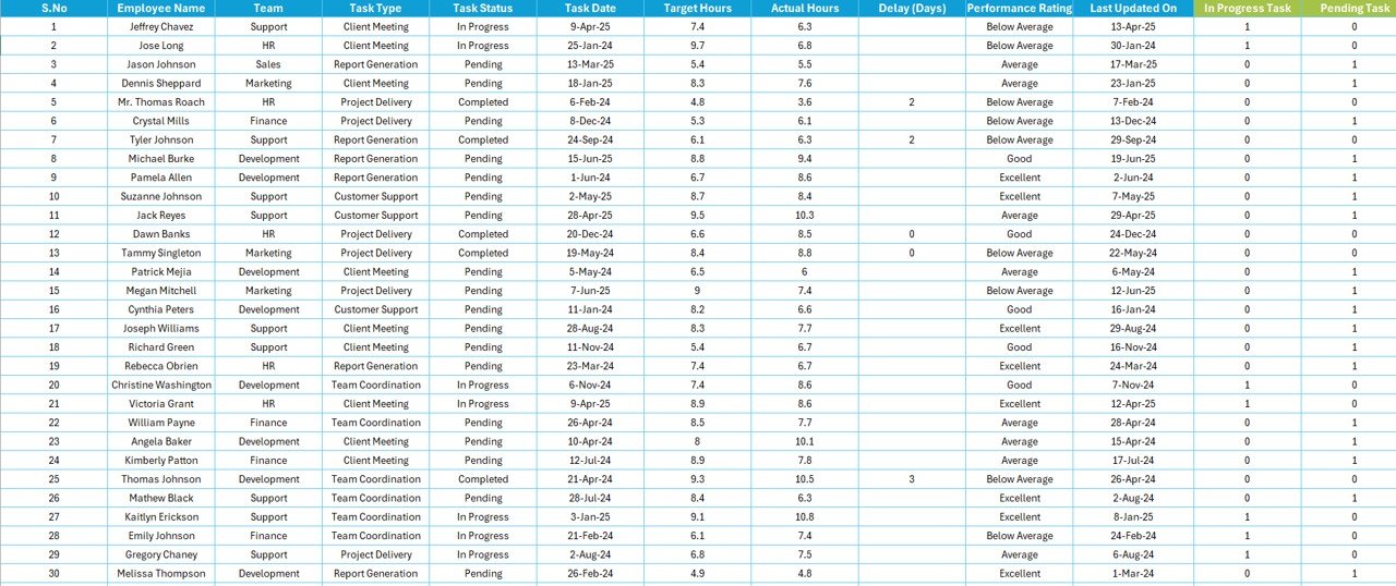 • ✅ Flexible structure for custom KPIs, task types, or department names.