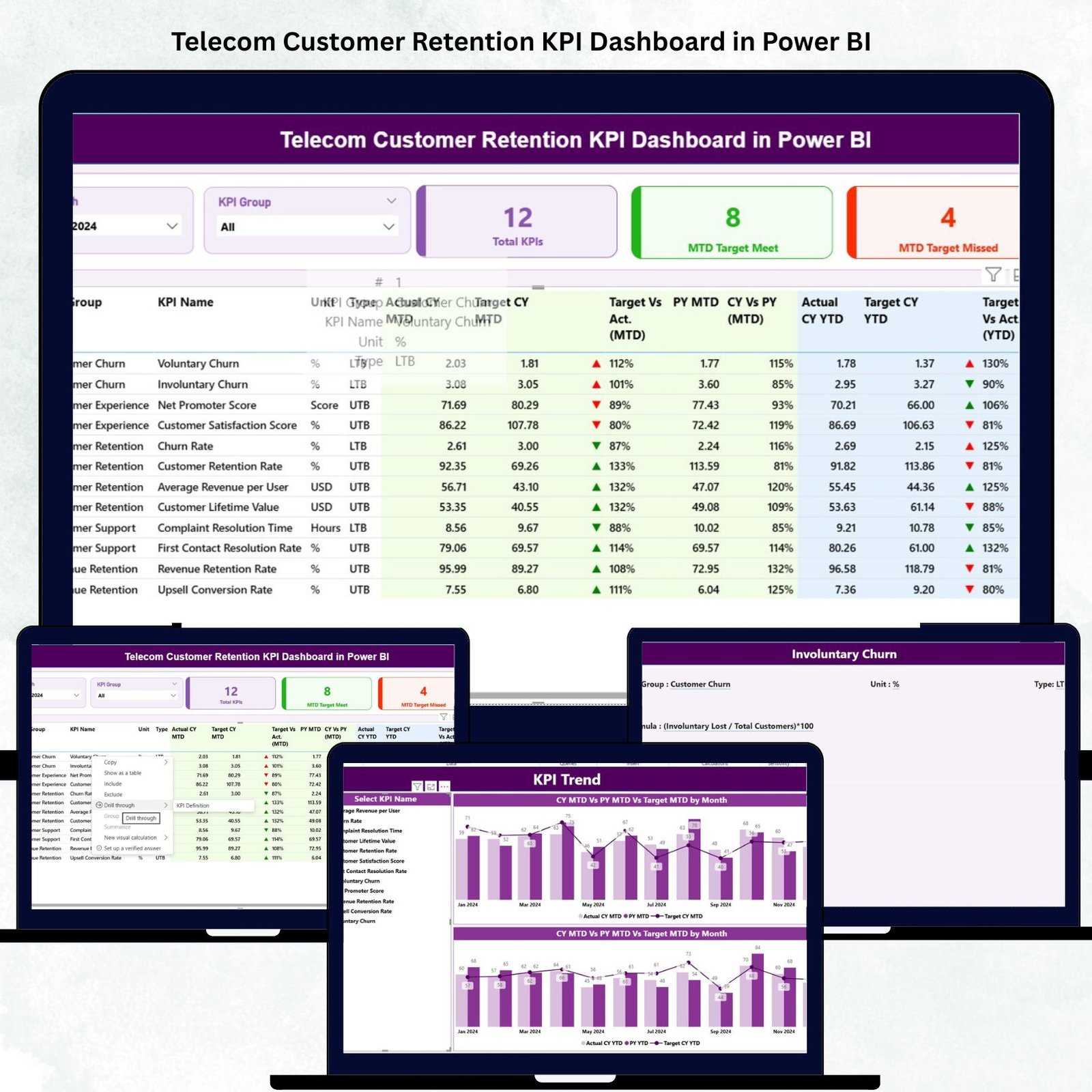 💡 Key Features of Telecom Customer Retention KPI Dashboard