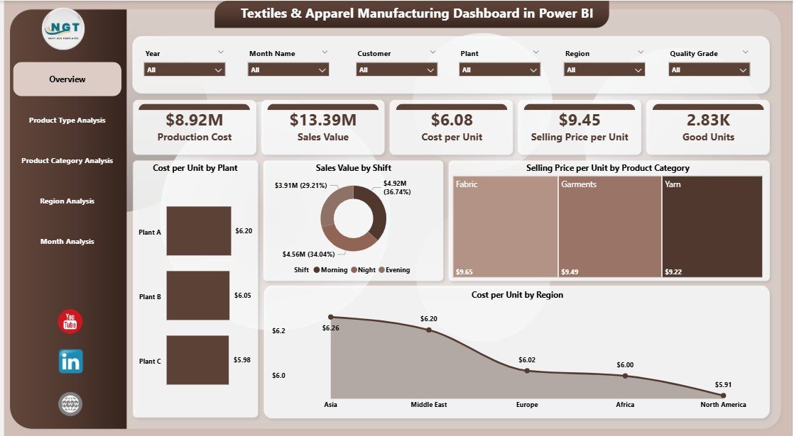 🔑 Key Features of Textiles & Apparel Manufacturing Dashboard in Power BI