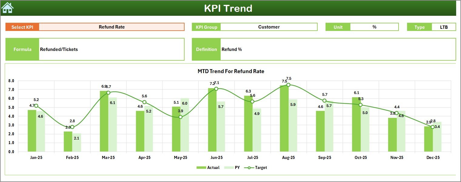 🎯 Target Sheet – Define monthly and yearly performance targets for each KPI.