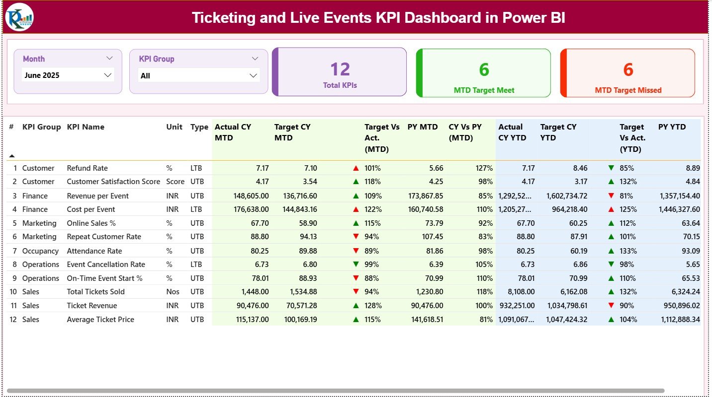 📂 What’s Inside the Ticketing and Live Events KPI Dashboard in Power BI