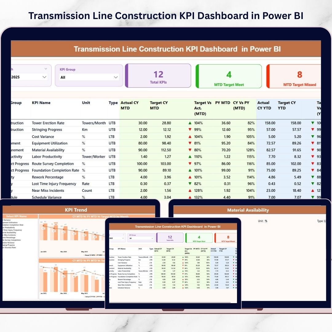 🚀 Key Features of Transmission Line Construction KPI Dashboard in Power BI