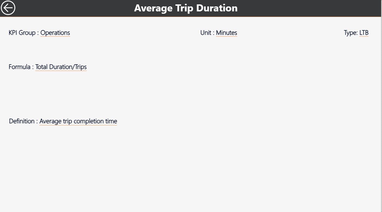 A drill-through page that lists KPI formulas, units, and definitions for transparent communication across teams.