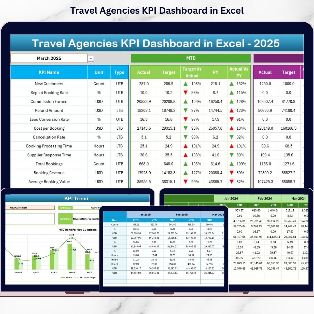 📦 What’s Inside the Travel Agencies KPI Dashboard in Excel