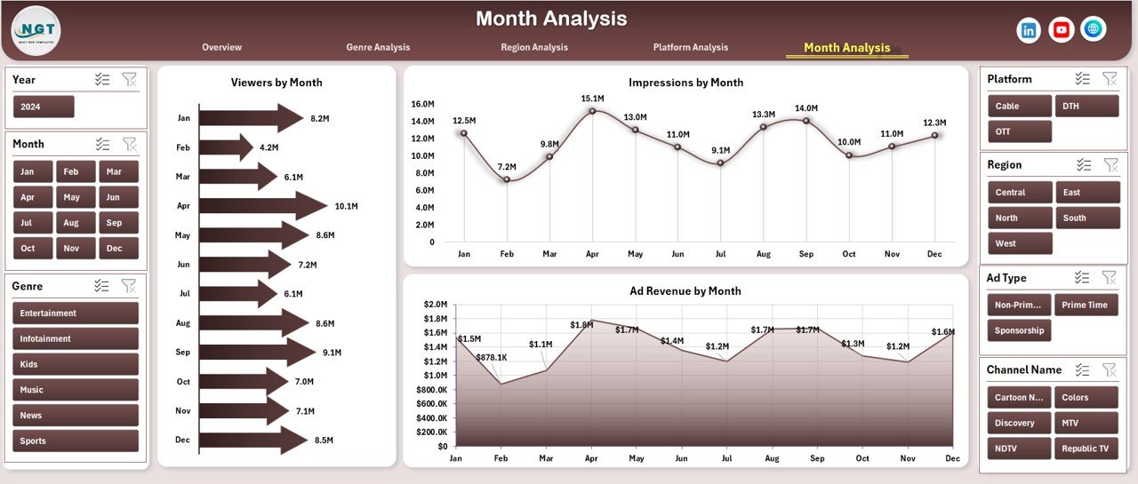 📌 Month Analysis Page – Track viewers, impressions, and ad revenue trends over time