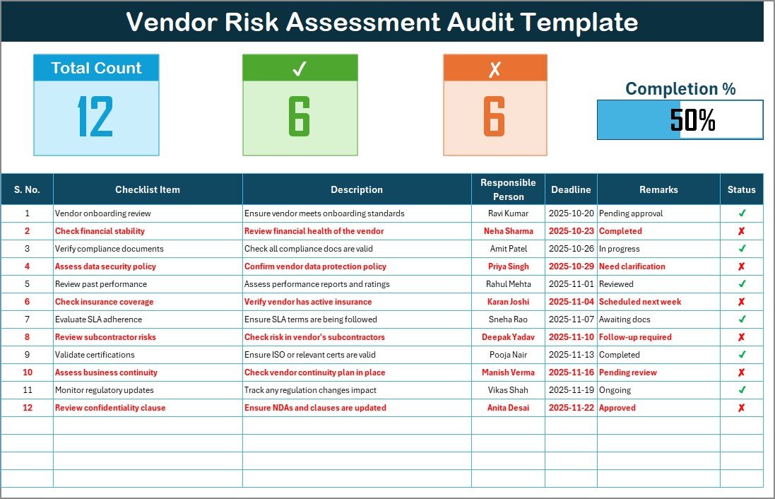With this checklist, you’ll never lose track of vendor audits again — making compliance simple, visual, and data-driven.