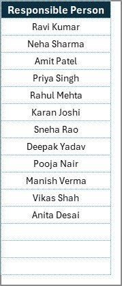 Contains a unique list of responsible persons used for dropdown menus.