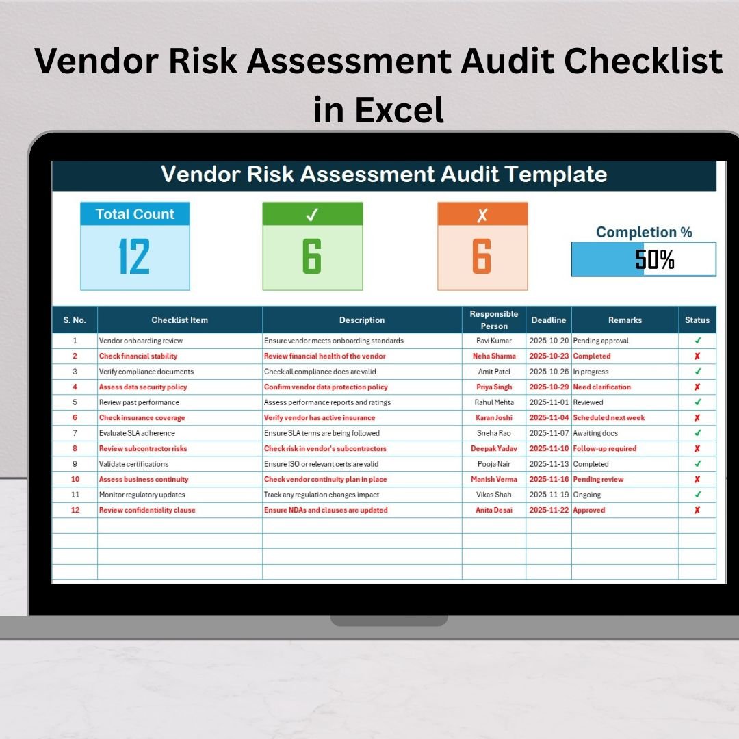 In today’s fast-paced business landscape, every organization depends on a network of vendors and suppliers. But along with convenience comes risk — from compliance failures to data leaks and operational breakdowns. The Vendor Risk Assessment Audit Checklist in Excel 🧩 is your all-in-one, ready-to-use solution for managing these risks efficiently.