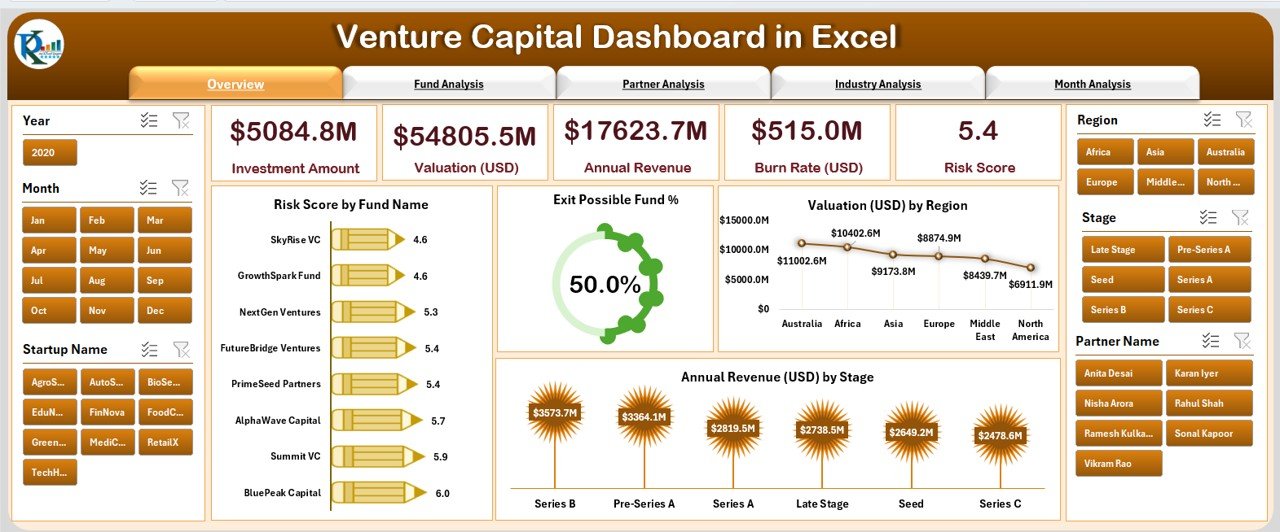 This dashboard contains five powerful analytical pages that give you a complete 360° view of the venture capital ecosystem.