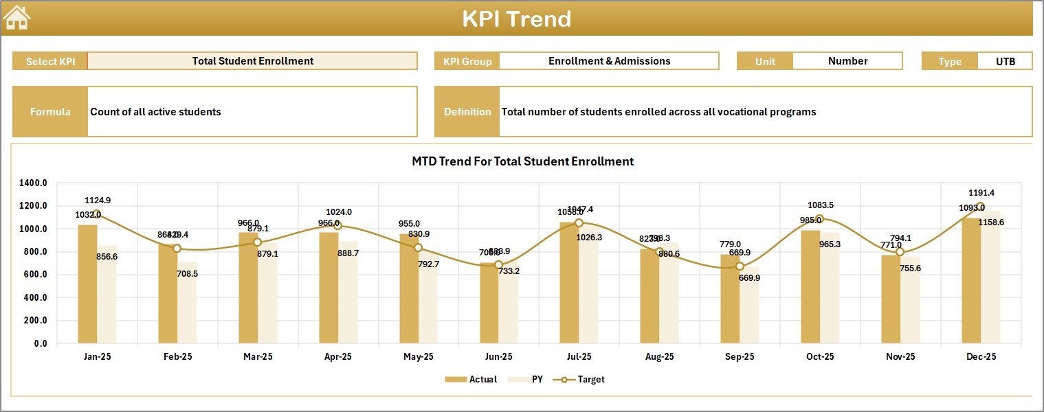 - 📋 Vocational School Directors: Monitor targets versus actuals to ensure institutional goals are met.