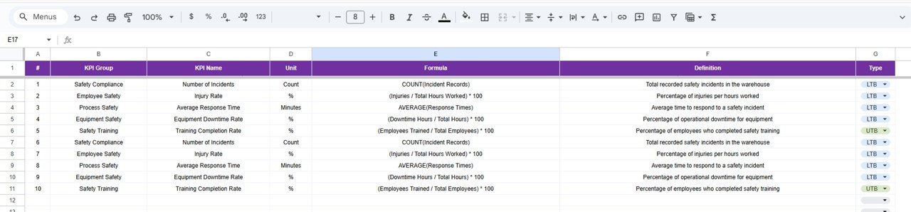 ⚙️ How to Use the Warehouse Safety KPI Dashboard in Google Sheets