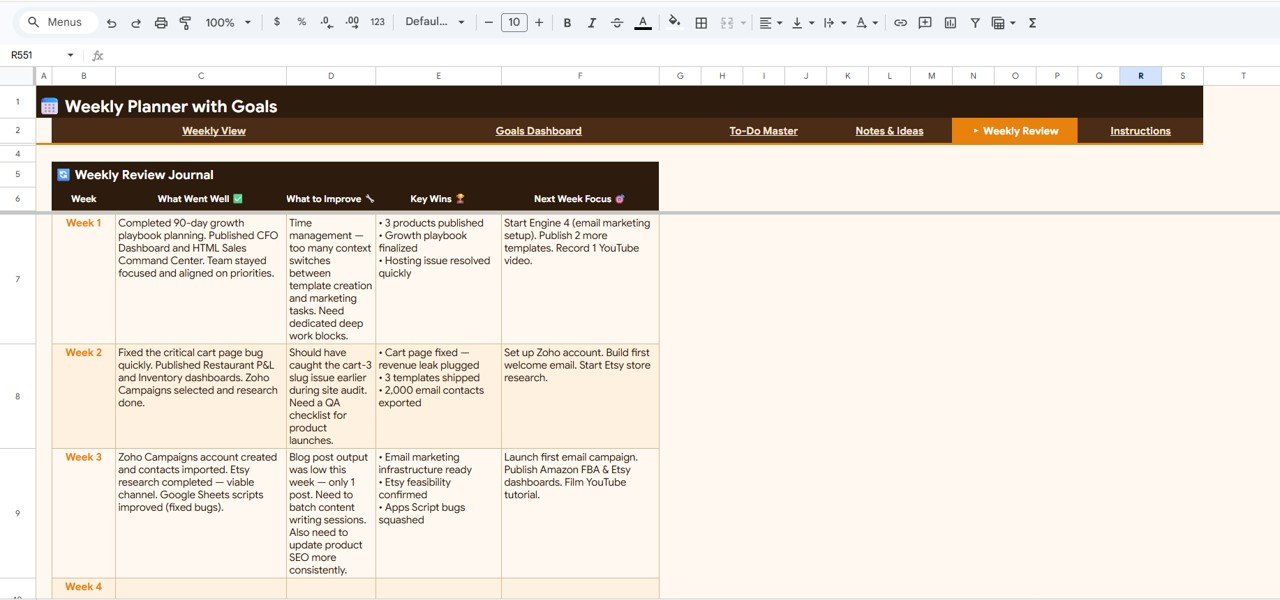 What is the best Google Sheets template for weekly planning and goal tracking?