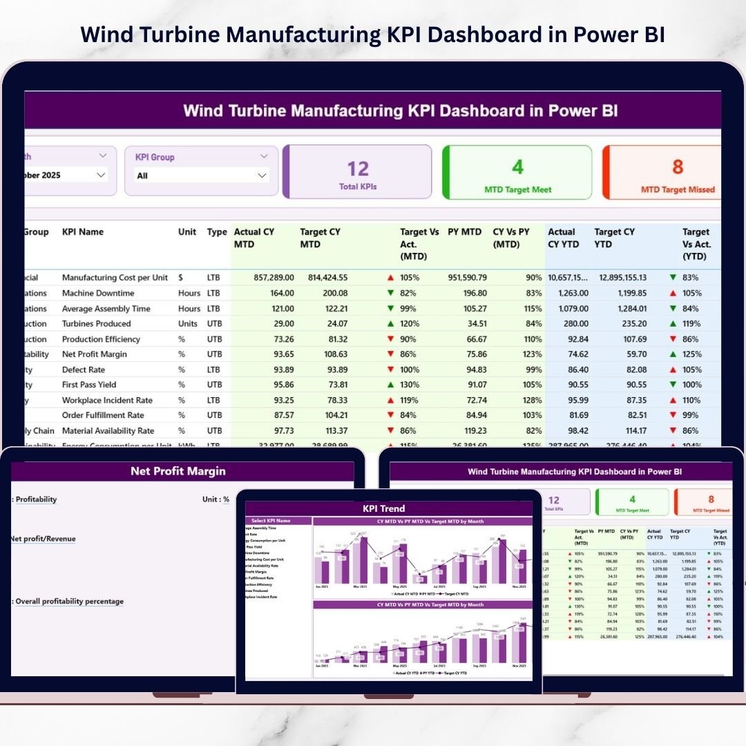 The Wind Turbine Manufacturing KPI Dashboard in Power BI provides a modern, intelligent solution.