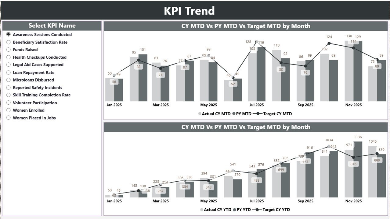 Women Empowerment NGOs KPI Dashboard in Power BI This ready-to-use Power BI dashboard converts structured Excel data into dynamic visuals. Instead of spending hours compiling reports, you can monitor targets, actual performance, MTD and YTD progress, and year-over-year growth in seconds.